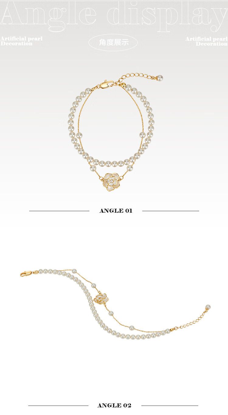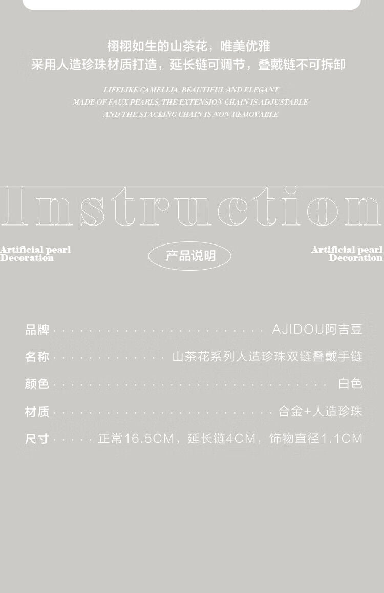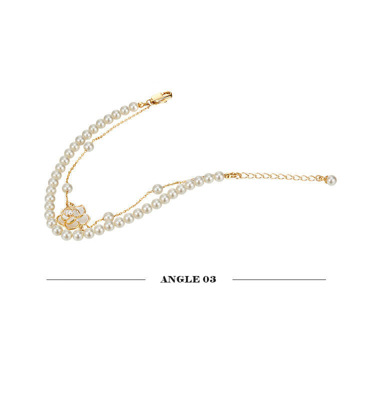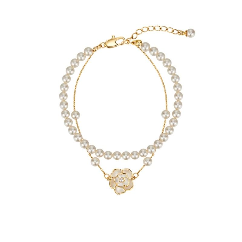 AJIDOUツバキの花 人工真珠のダブルチェーンブレスレット誕生日プレゼント彼女妻にプレゼント