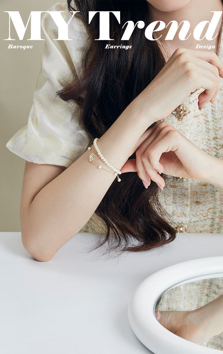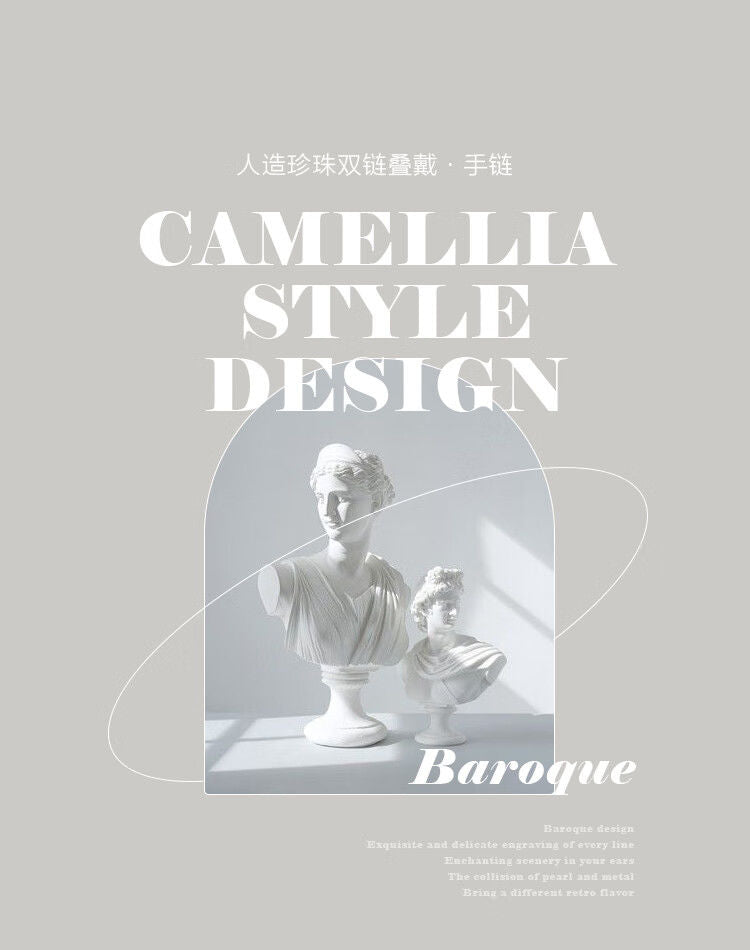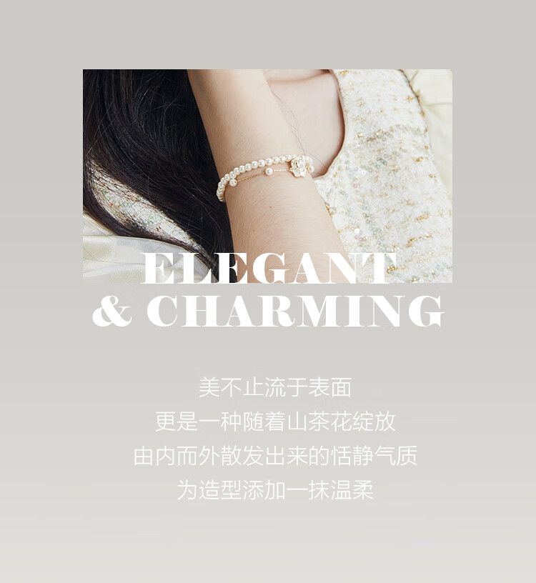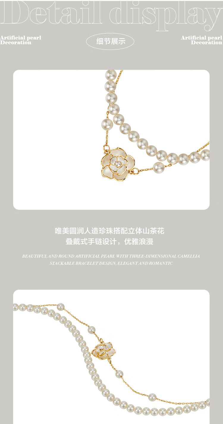 AJIDOUツバキの花 人工真珠のダブルチェーンブレスレット誕生日プレゼント彼女妻にプレゼント
