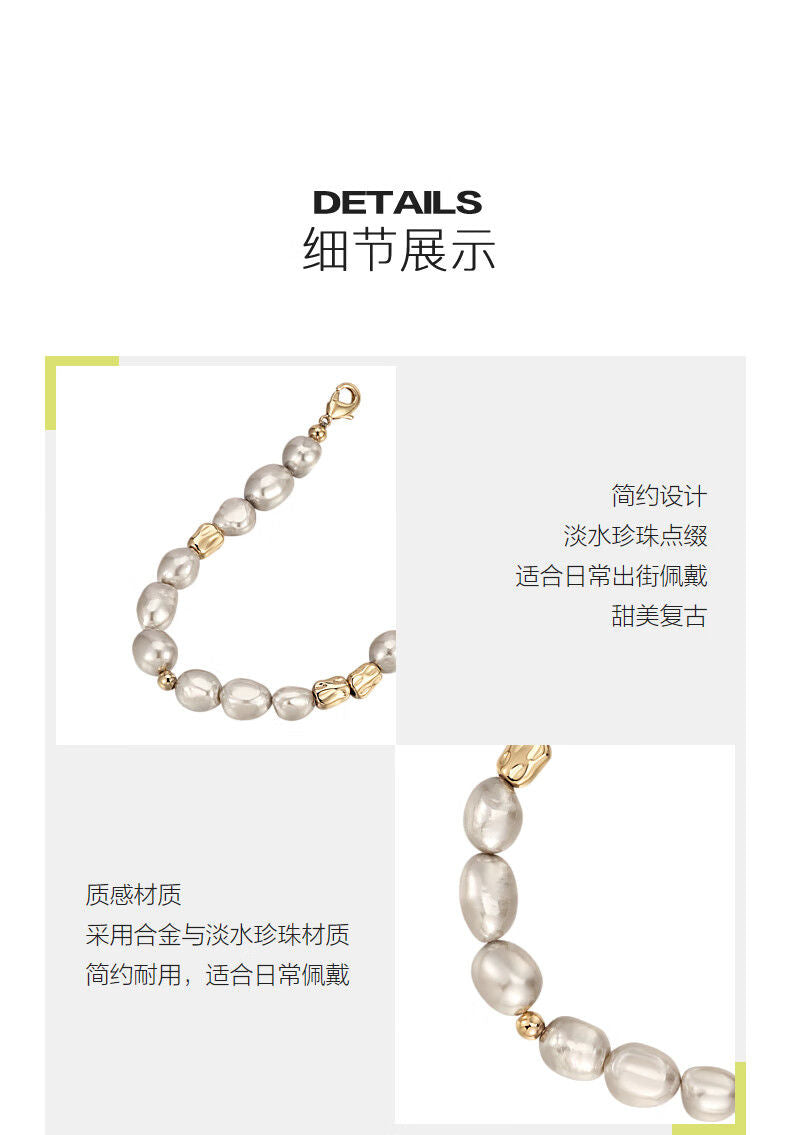 AJIDOUフレンチシックで優しい グレーのパールブレスレット女性ギフト