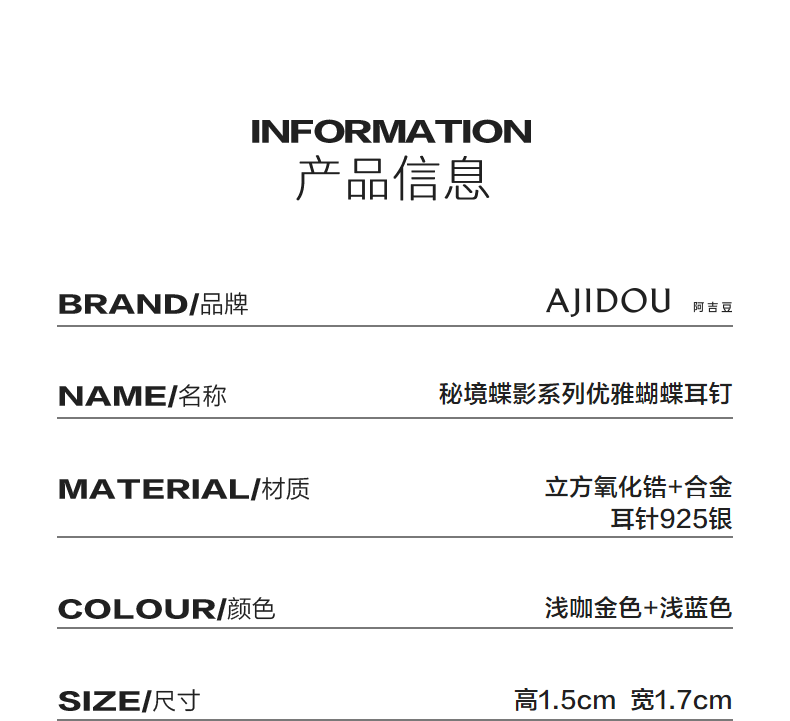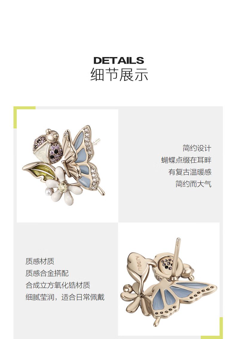 AJIDOU優雅な蝶のピアスシンプルで高級で洗練された気質耳飾り贈り物