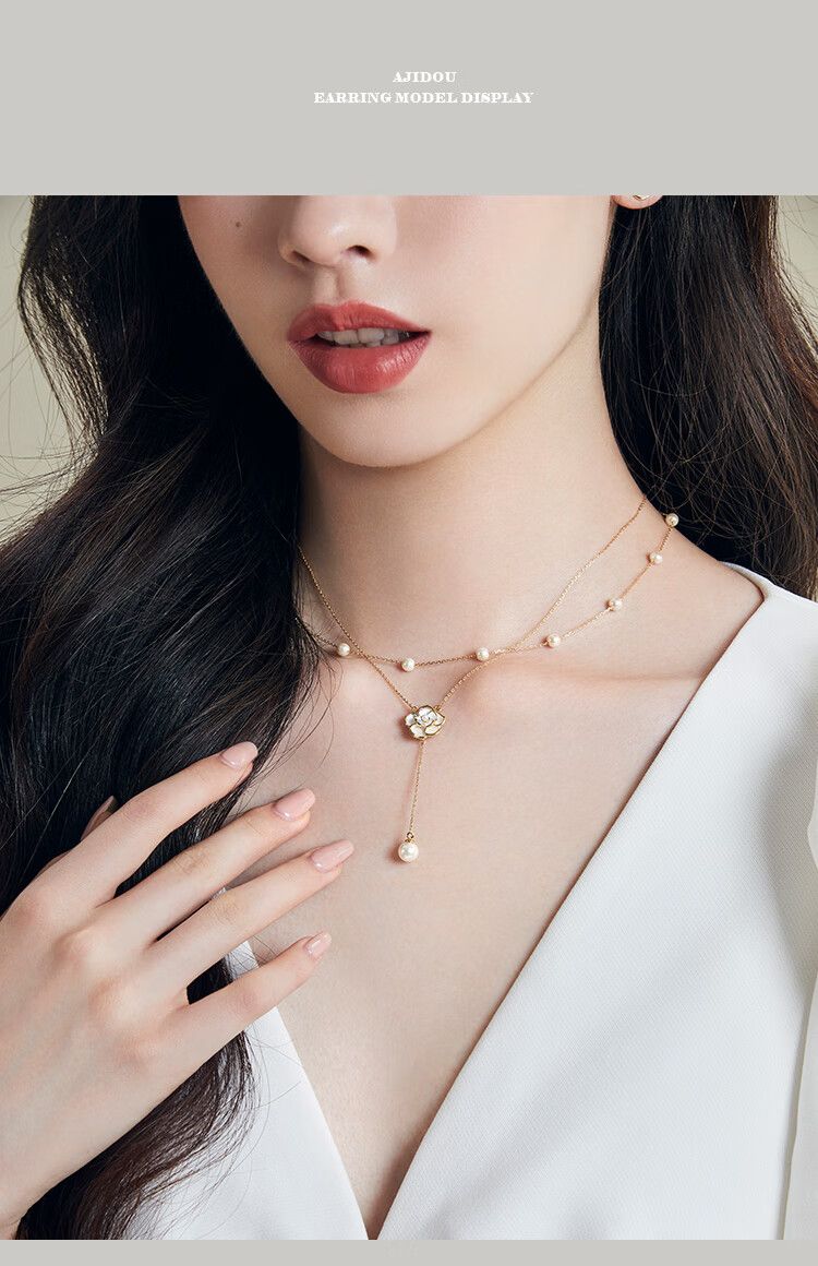AJIDOU椿の花二重重ね真珠ネックレス贅沢おしゃれプレゼント