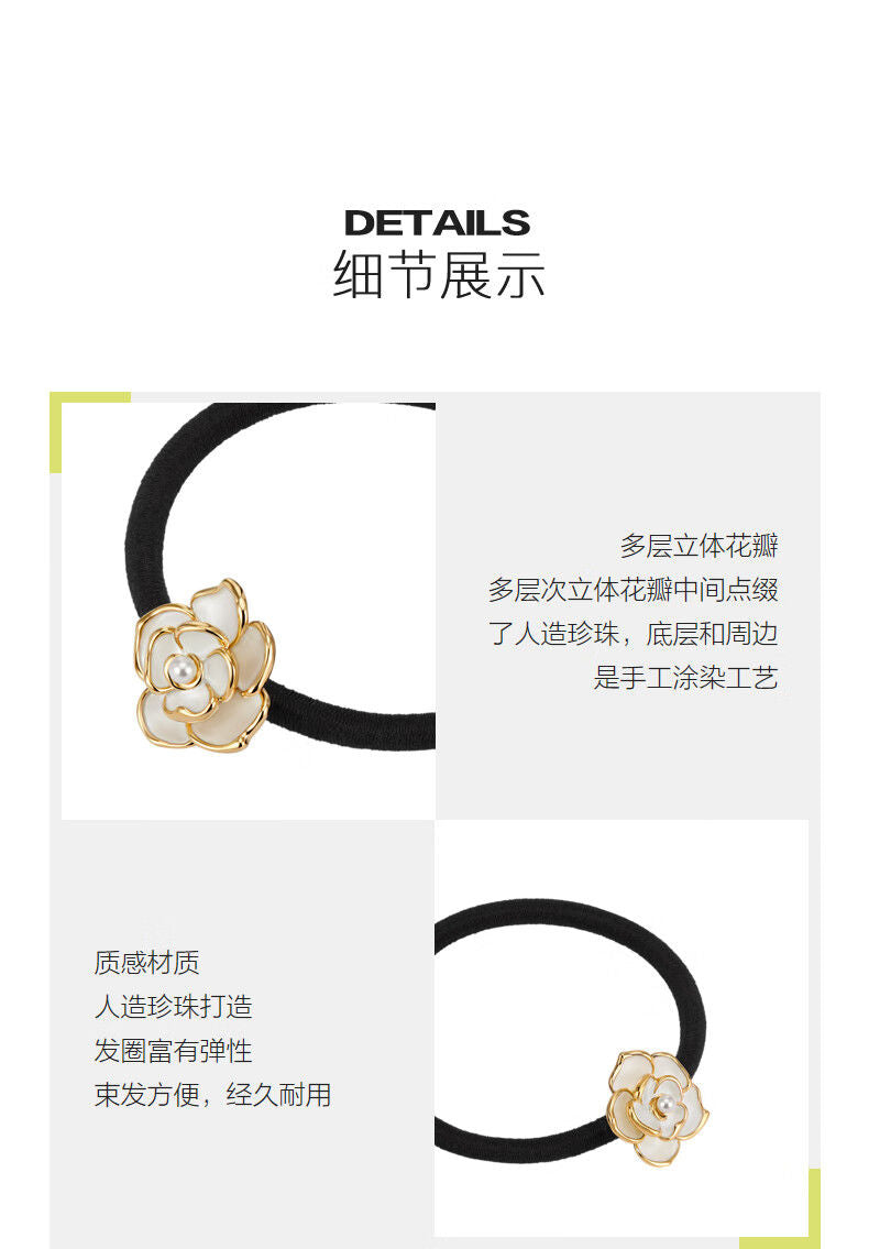 AJIDOU椿の花人工真珠弹性シュシュ女性ヘアロープ髪飾りプレゼント