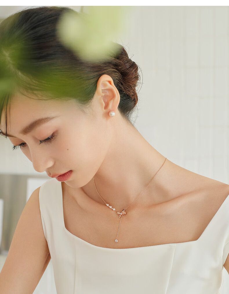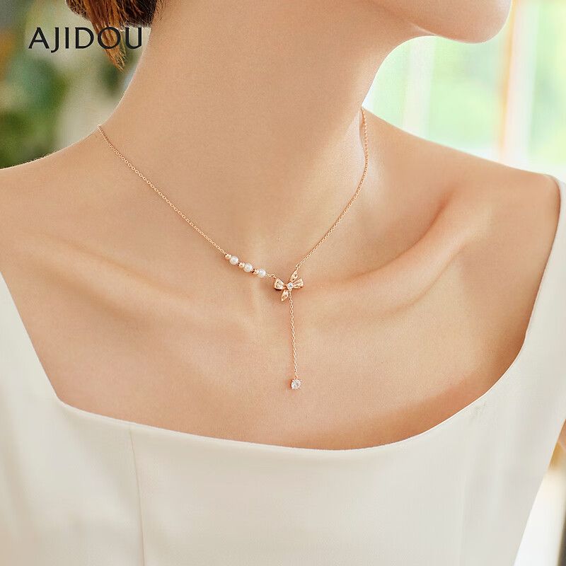 AJIDOU甘美でお洒落なリボンネックレス贅沢ins風鎖骨チェーン