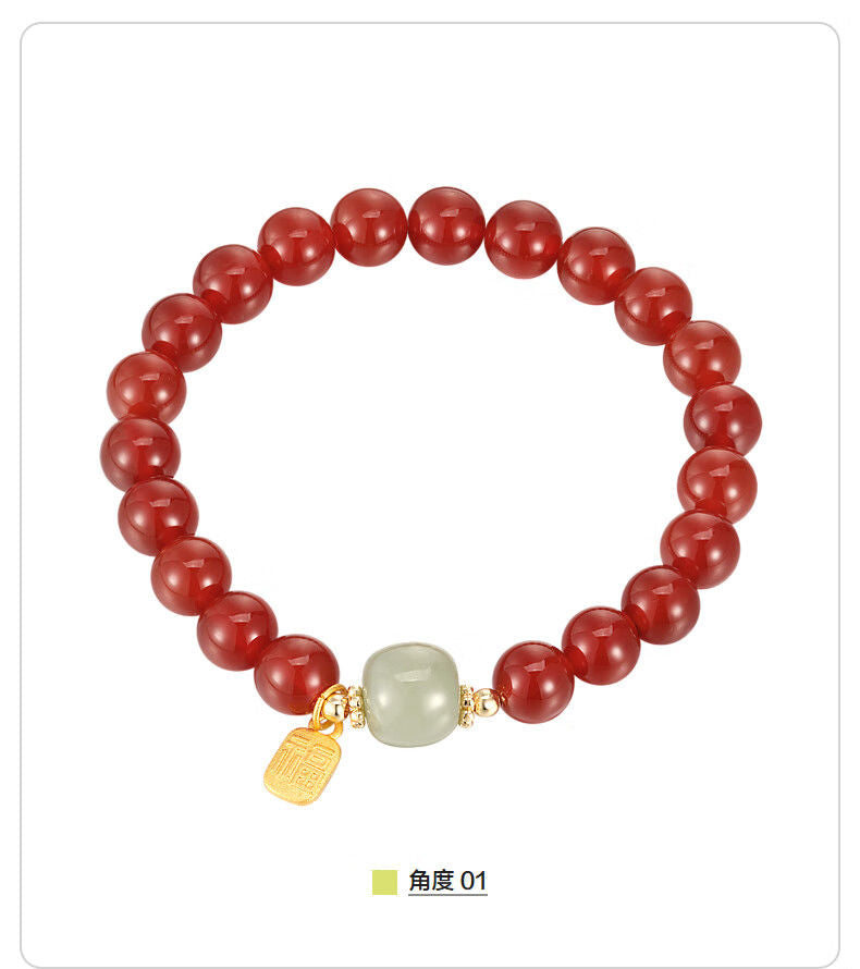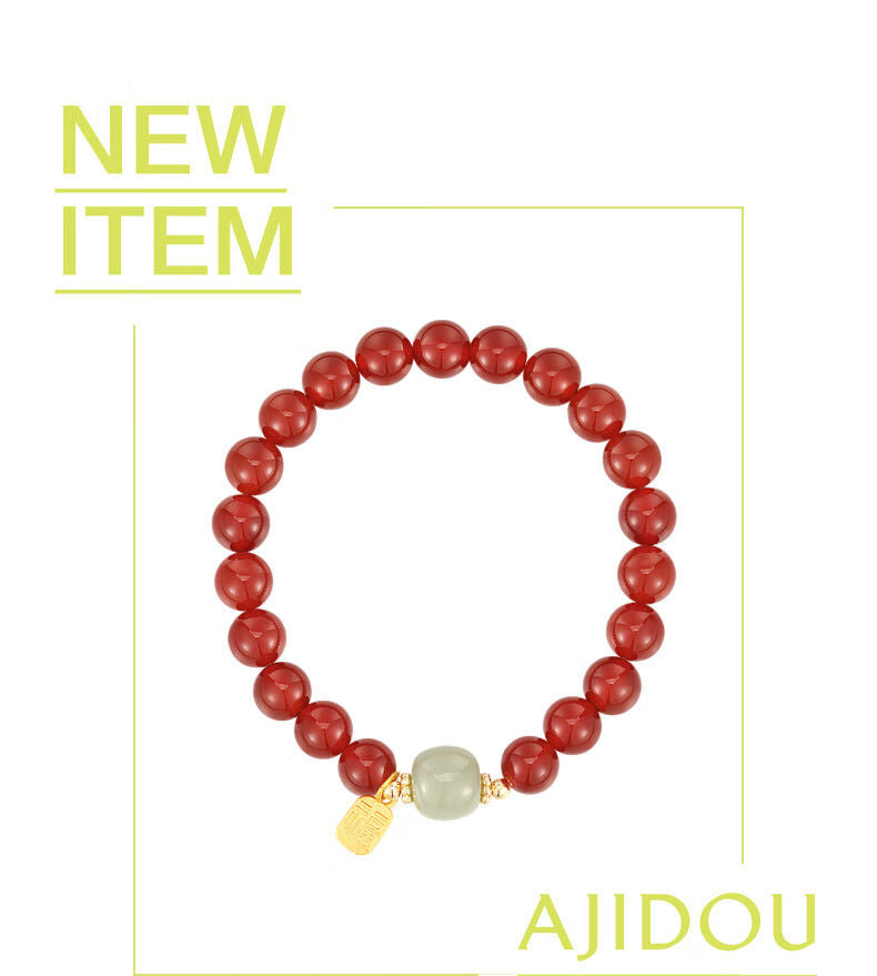AJIDOU福気赤瑪瑙と田玉ブレスレット気品優雅手串贈り物