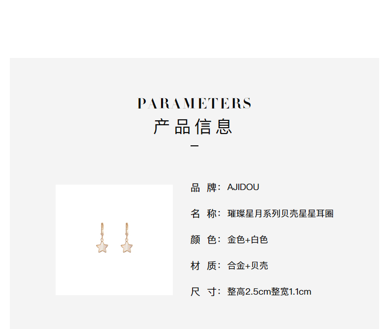 AJIDOU輝く星月貝殻星の耳輪高級シンプル顔がやせて見えるイヤリング贈り物