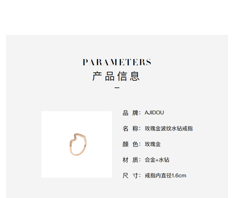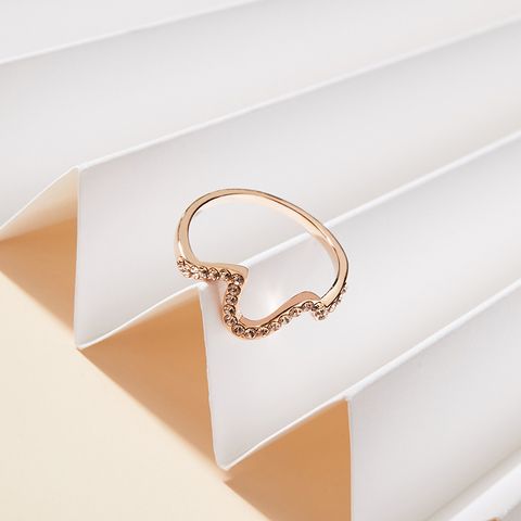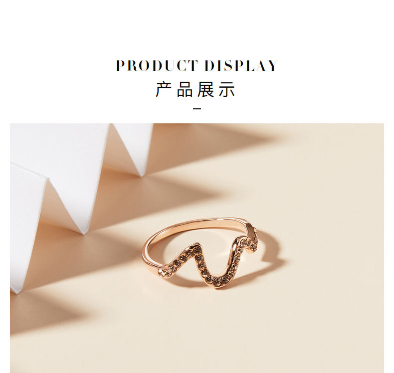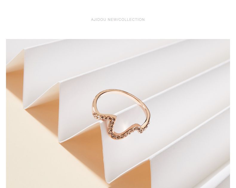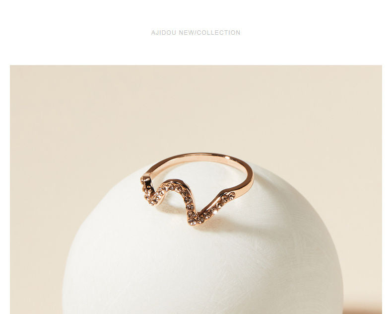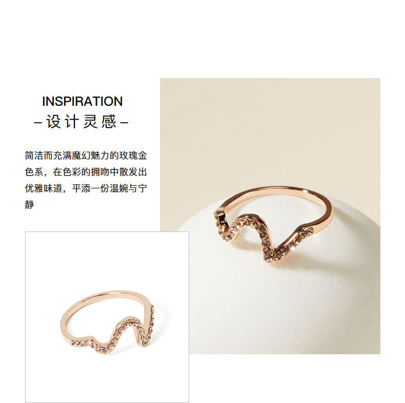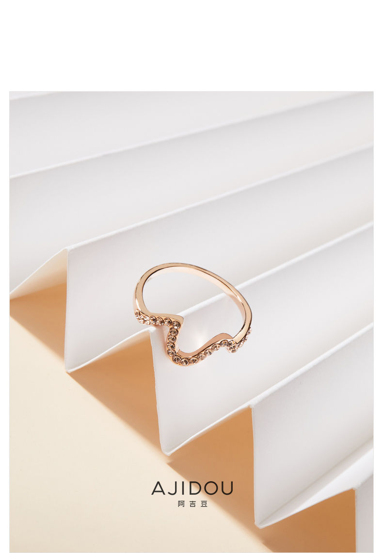 AJIDOUローズゴールド波紋のラインストーンリング個性指輪贈り物