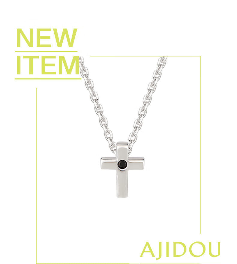 AJIDOU925シルバーコンパクトクロスネックレスクリエイティブデザインカジュアルクールネックチェーンギフト
