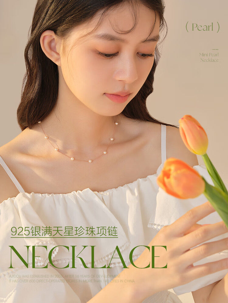 AJIDOU 925シルバーパールネックレス女性シンプルペンダント学生鎖骨チェーン誕生日プレゼント
