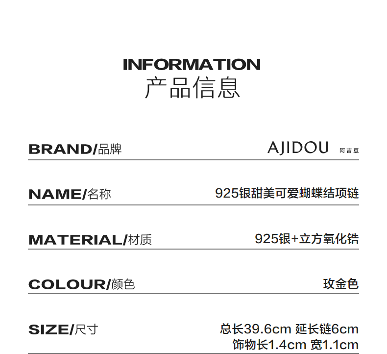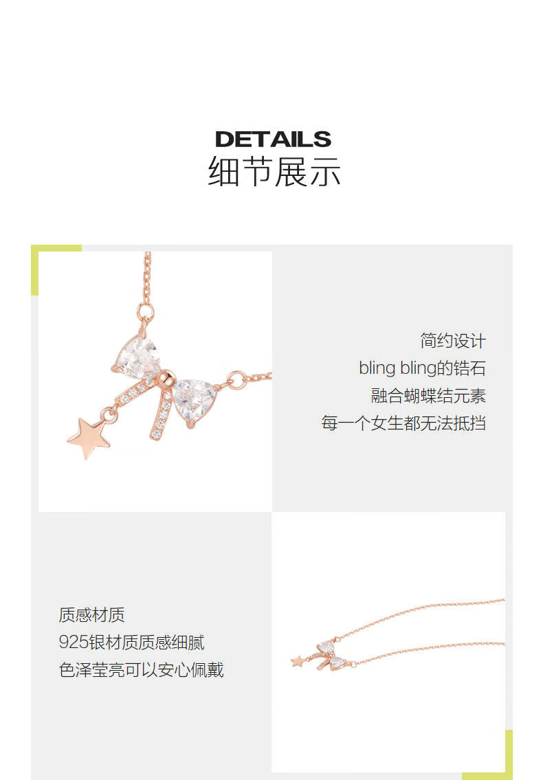 AJIDOU925シルバー甘くてかわいいリボンネックレス贈り物