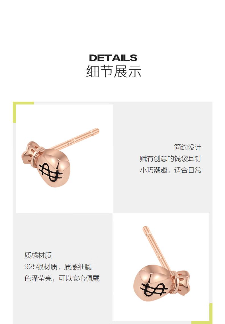 AJIDOU 925銀の小ぶりな巾着袋招き財おもしろいファッション女性ピアス贈り物