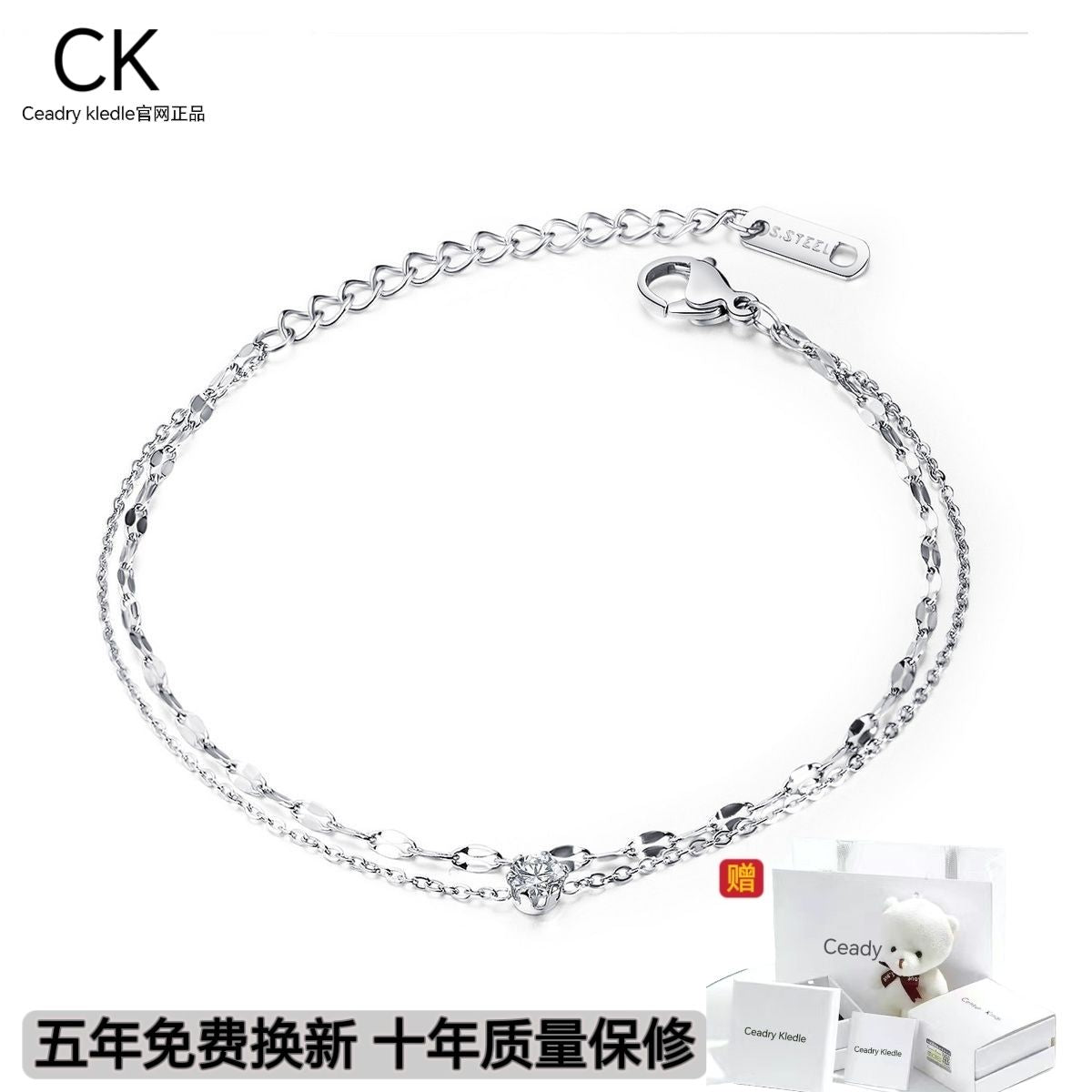 Ceadry kledleコンパクト2重色落ちないプラチナローズゴールドレディースブレスレット