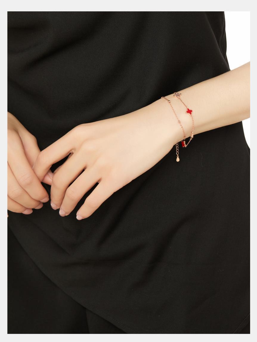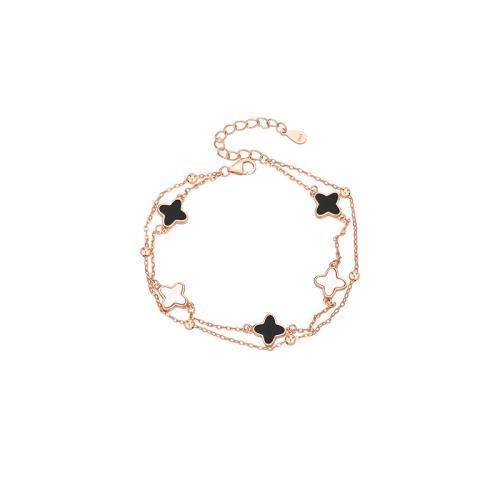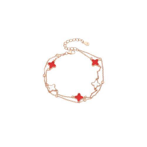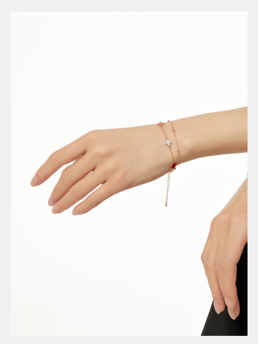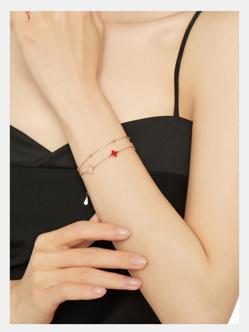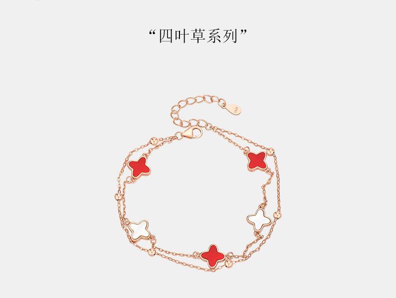 Chomel Kiss純銀二重四つ葉のクローバーブレスレット女性