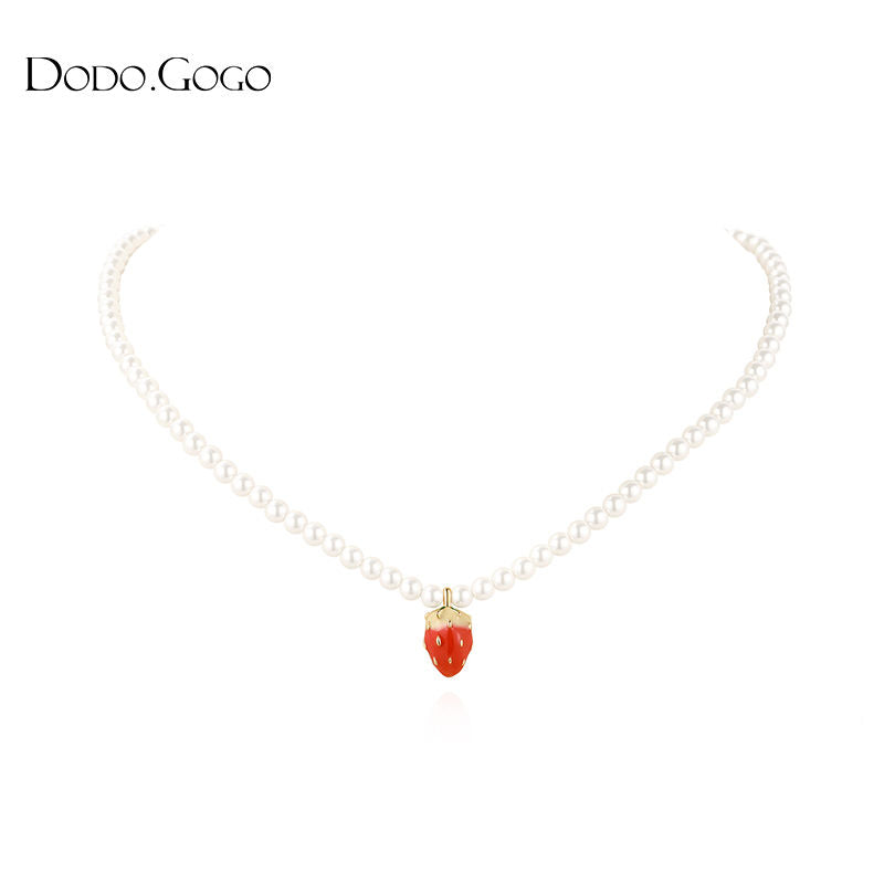 DODOGOGOストロベリーパールネックレス女性高級感鎖骨チェーン2024新作ネックレス