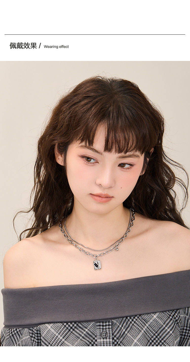 DODOGOGO二重重ねブロックネックレスチタン鋼クールヒップホップ衛衣チェーン