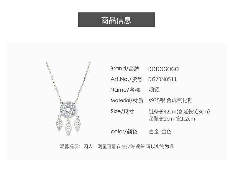 DODOGOGO捕夢網ネックレス女S 925銀冷淡風insシンプル気質鎖骨チェーン