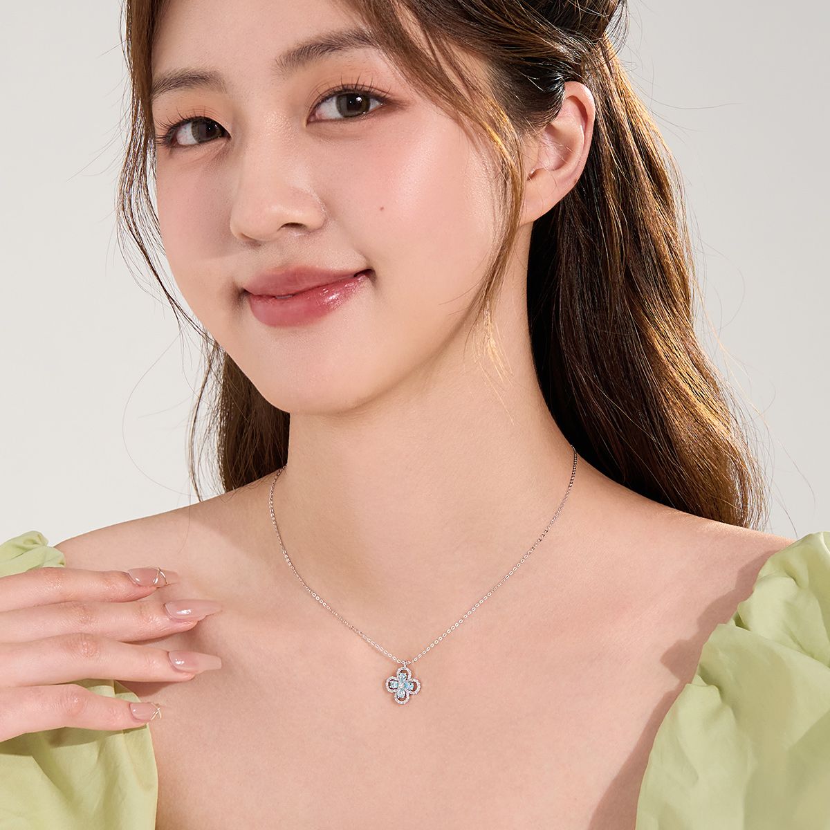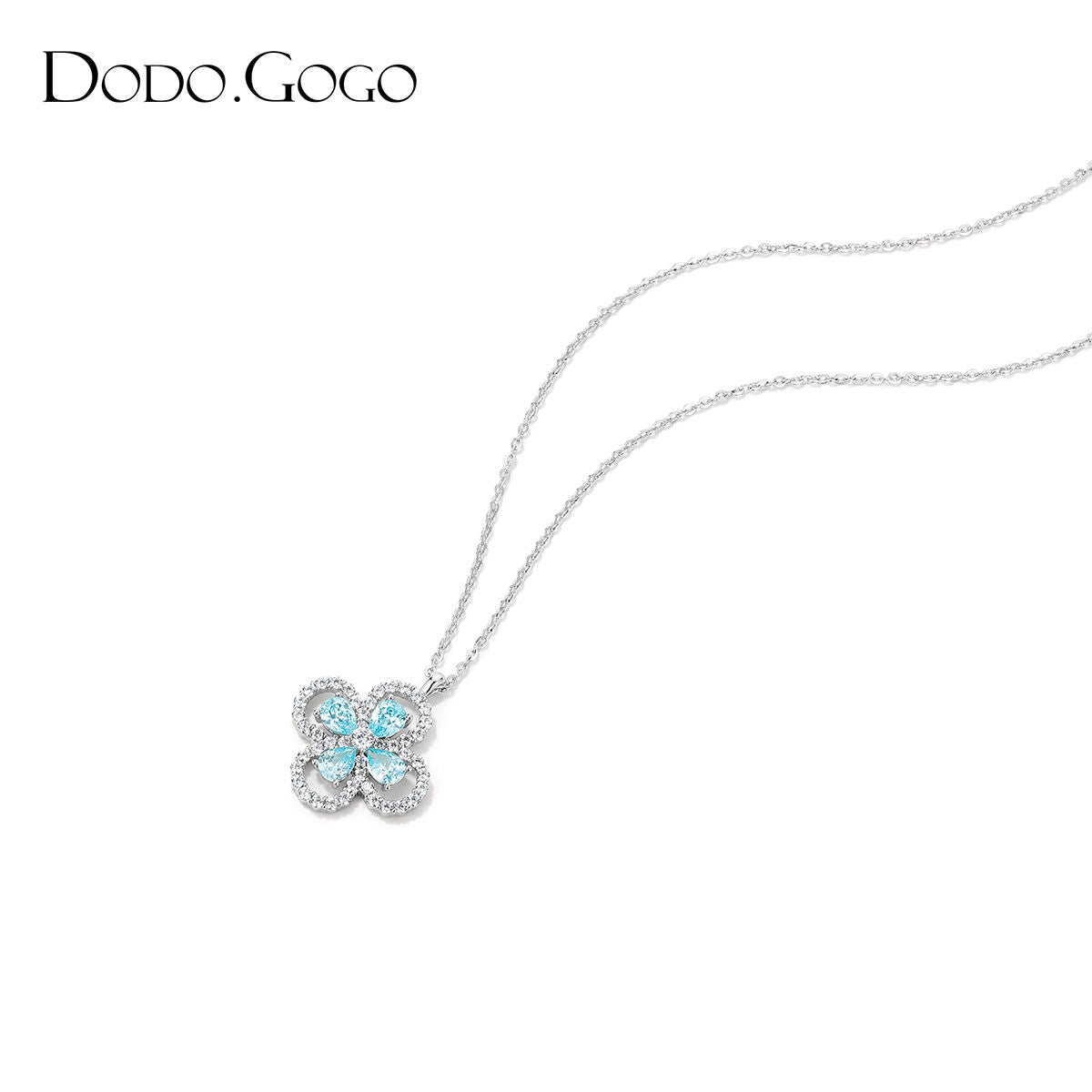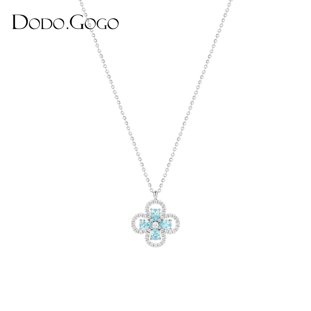 DODOGOGO ラッキークローバーネックレスブルージルコン輝く高級感ネックレス2024秋冬新作ネックレス