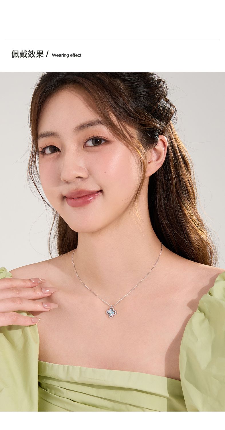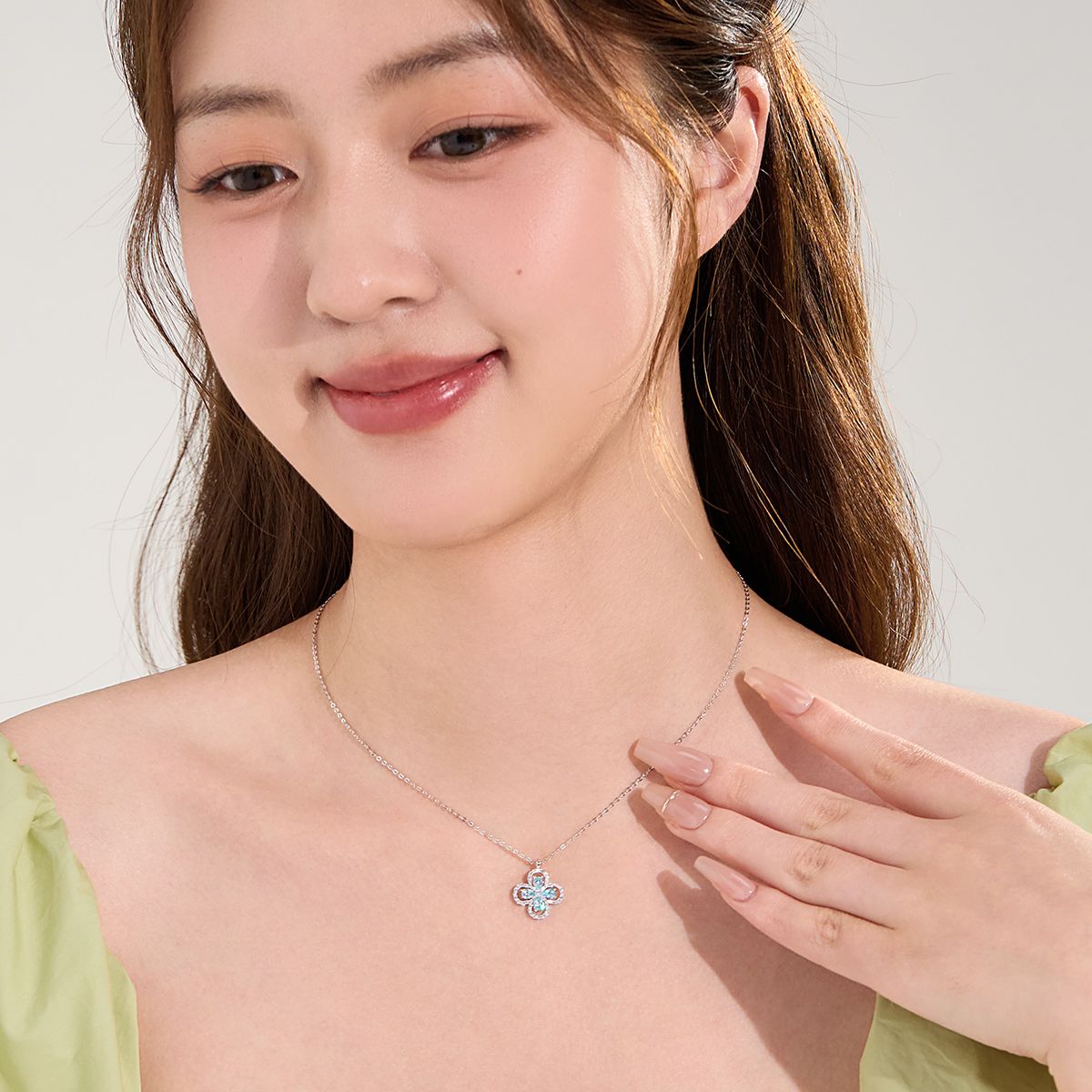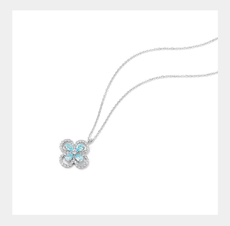 DODOGOGO ラッキークローバーネックレスブルージルコン輝く高級感ネックレス2024秋冬新作ネックレス