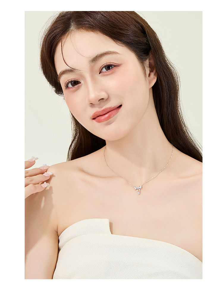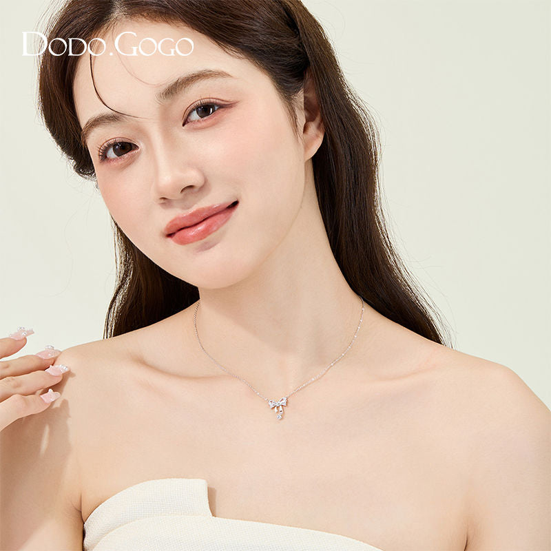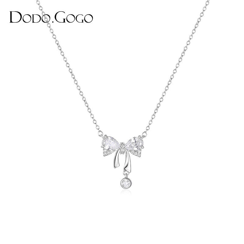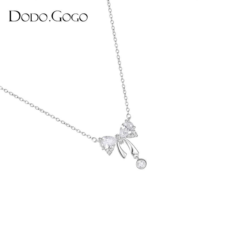 DODOGOGO リボンジルコンペンダントネックレスレディース高級ネックチェーン2024新作ネックレス