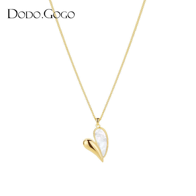 DODOGOGO 非対称シェルハートネックレスおしゃれ925シルバー新作ネックレス