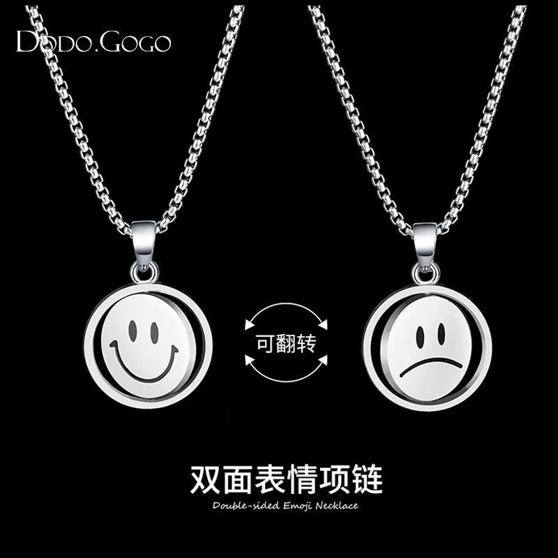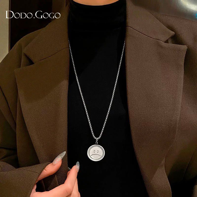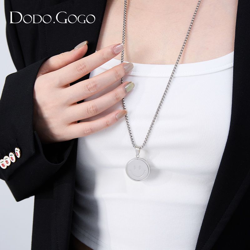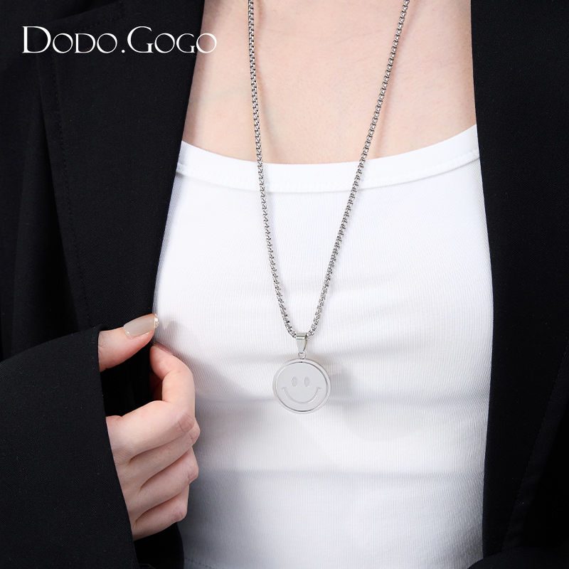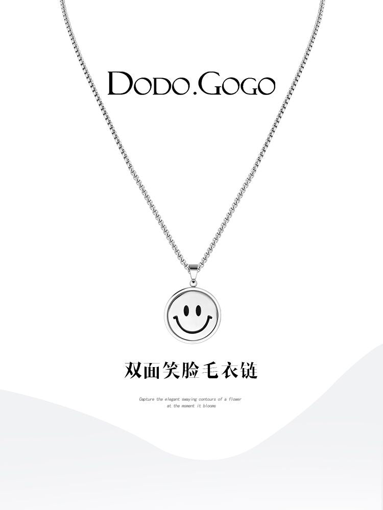 DODOGOGO2面笑顔カップルネックレス男性中性風ins鎖骨チェーンロングチタン鋼セーターチェーン