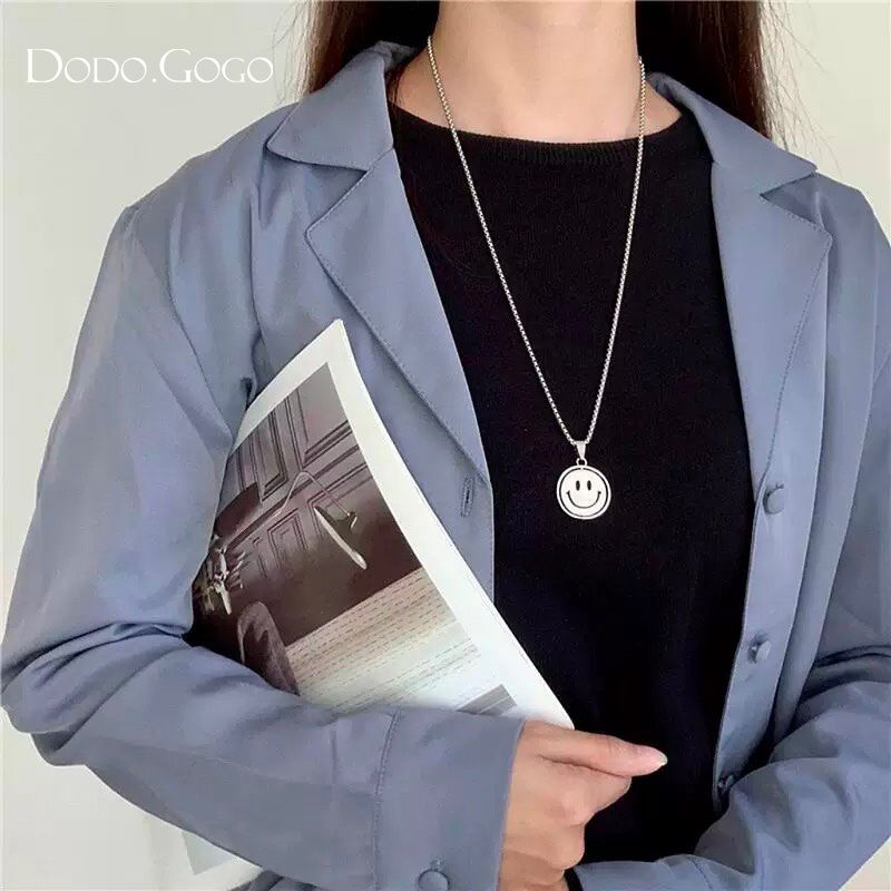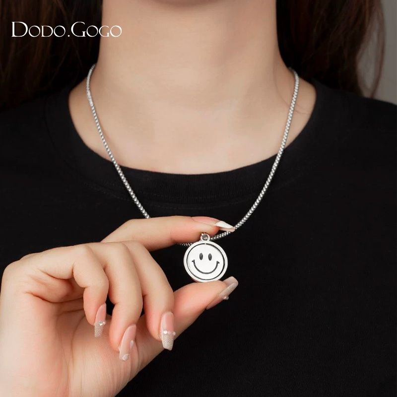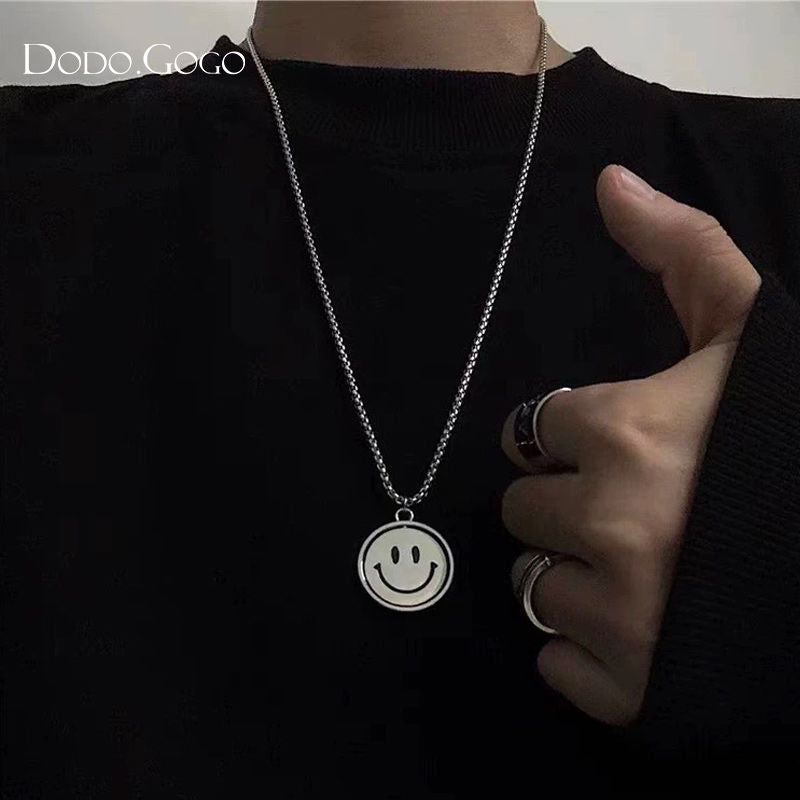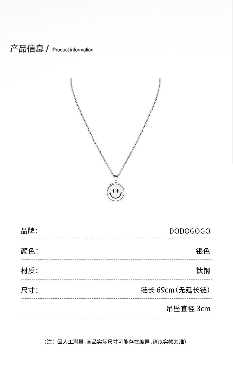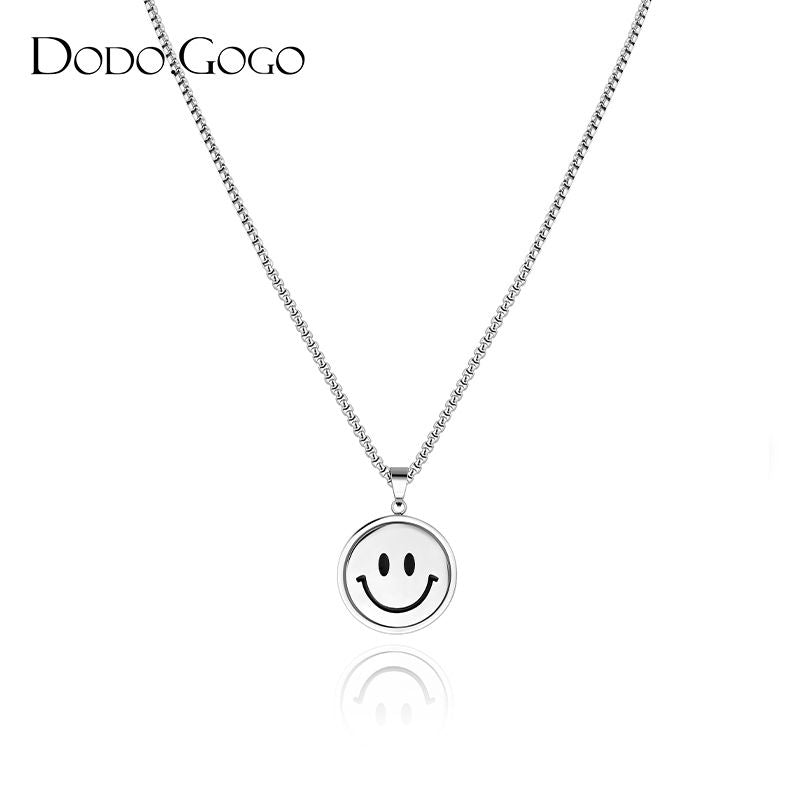 DODOGOGO2面笑顔カップルネックレス男性中性風ins鎖骨チェーンロングチタン鋼セーターチェーン
