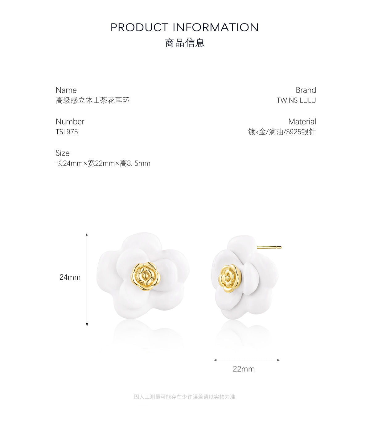 TWINS LULUフレンチ小香風立体椿のイヤリングロマンチックコーデプレゼント