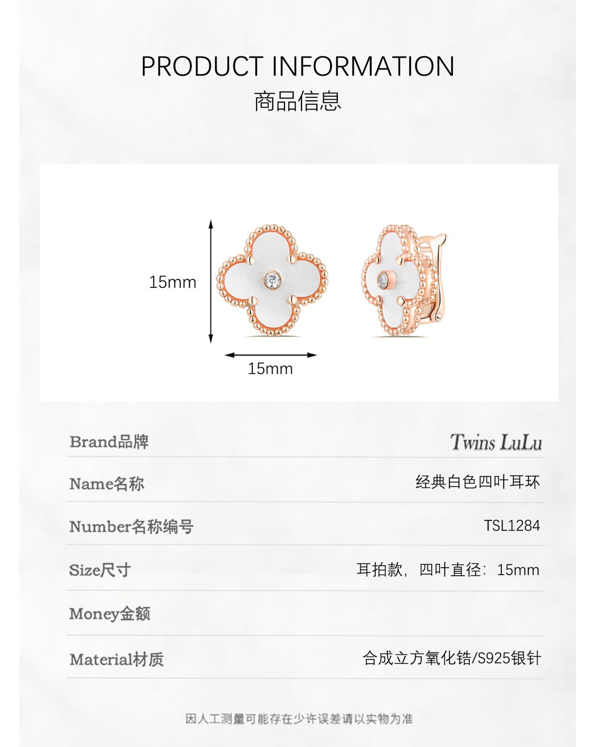 TWINS LULU優雅優しく贅沢精緻四つ葉のイヤリング