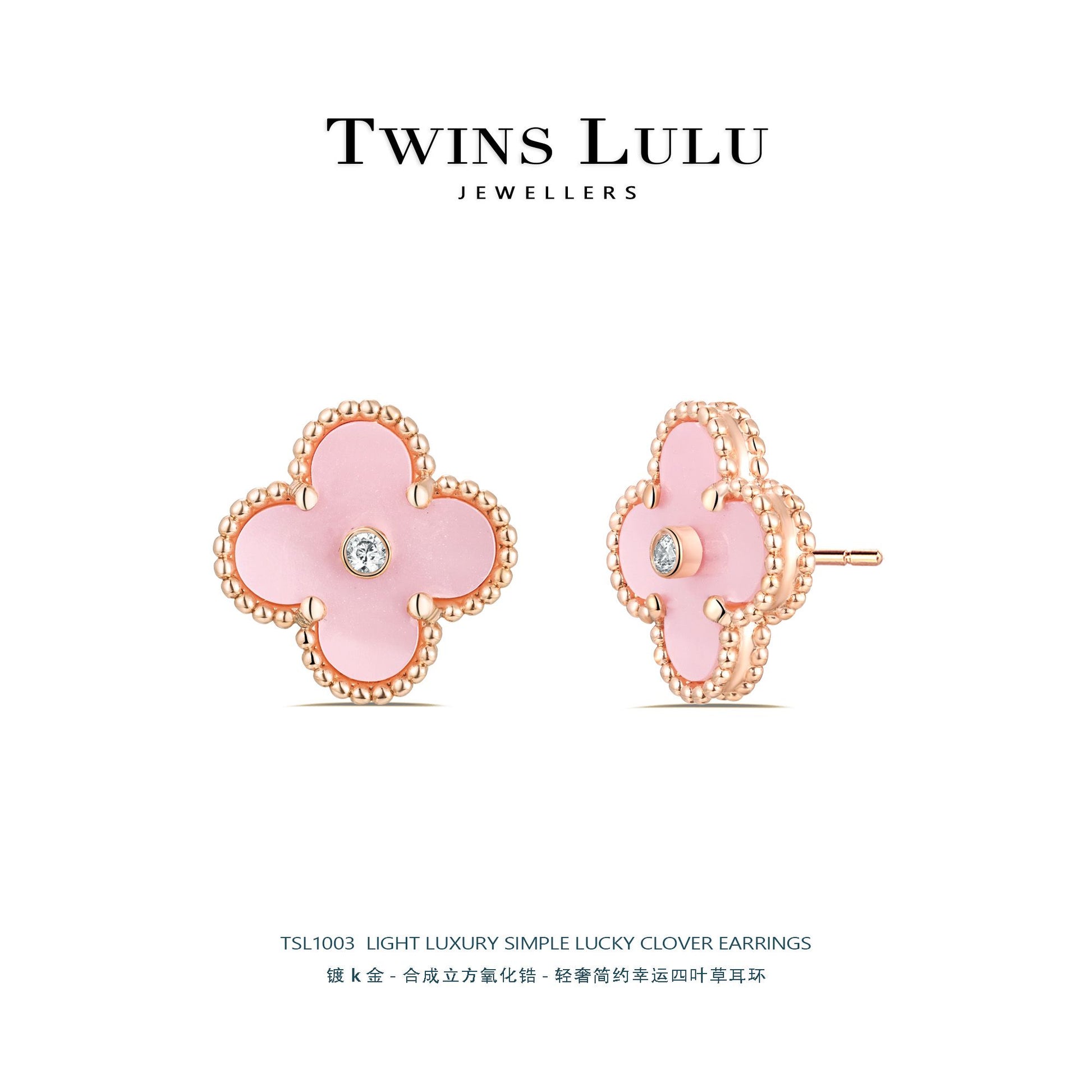 TWINS LULU洗練された贅沢ラッキーピンク四つ葉クローバーセットファッションコーデプレゼント