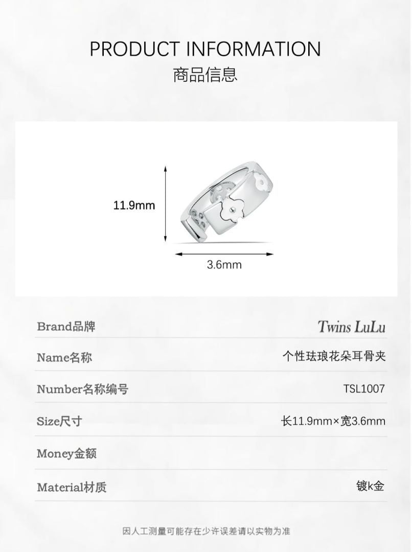 TWINS LULU象眼エナメル四つ葉のクローバー耳骨クリップシンプルコーデ彼女にプレゼント