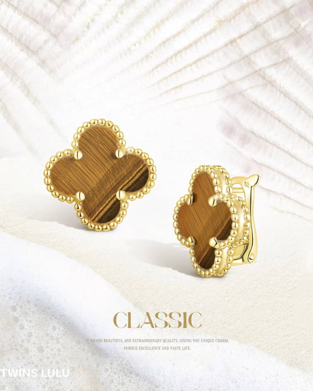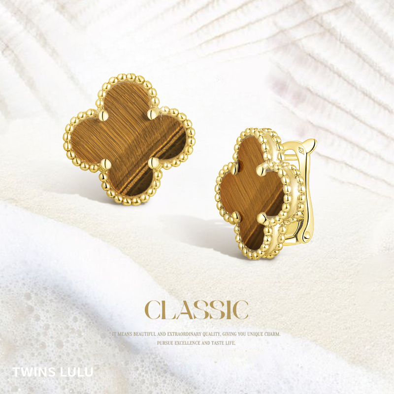 TWINS LULU シンプルモダンレトロな四つ葉のクローバーのイヤリング贅沢コーデ