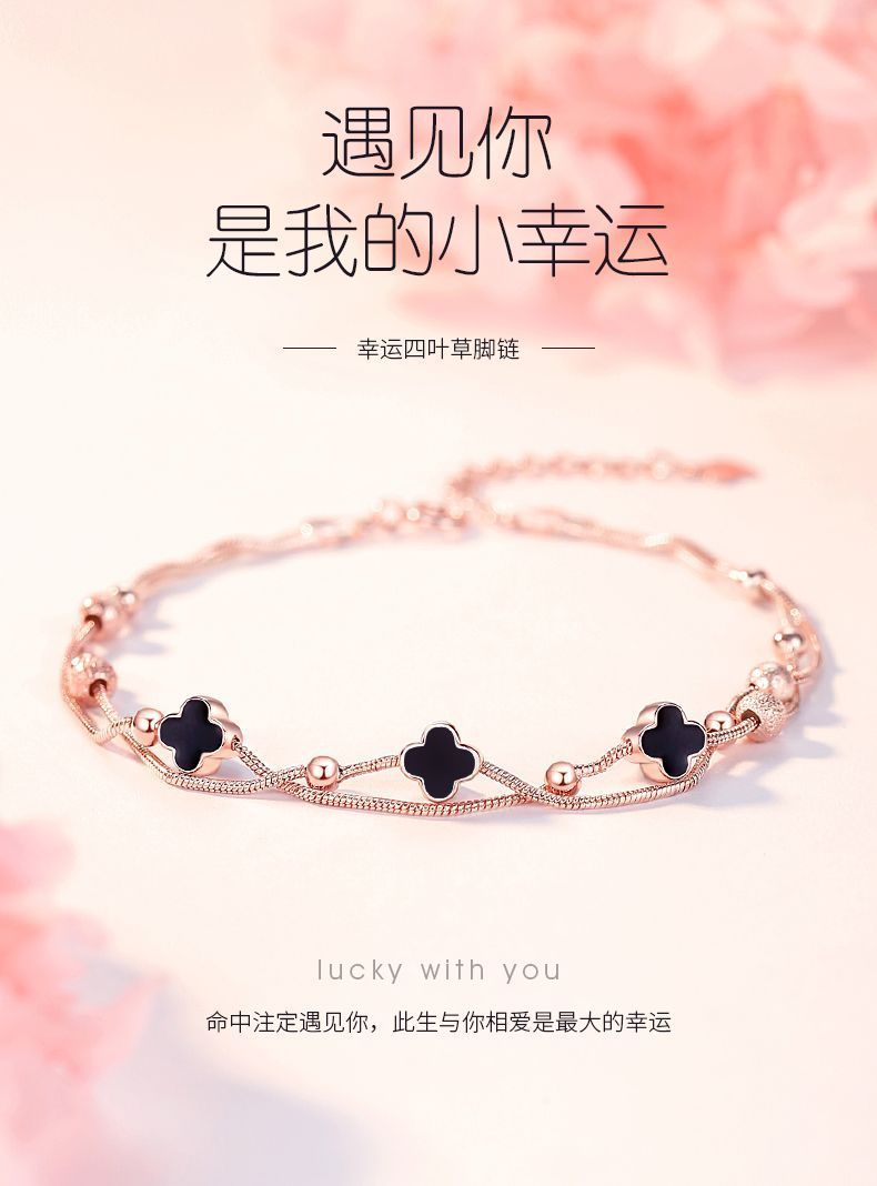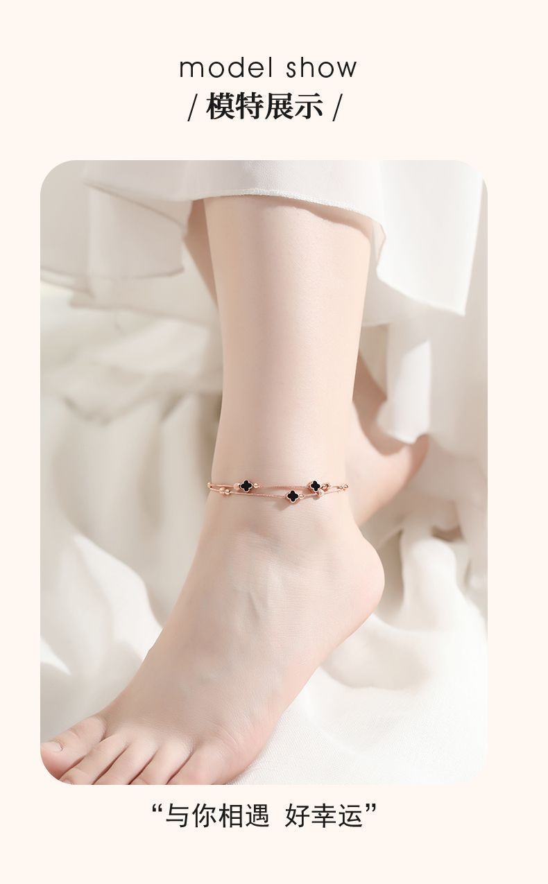 VANAめのう四つ葉クローバーアンクレット足輪女性925シルバー贅沢バレンタインプレゼント