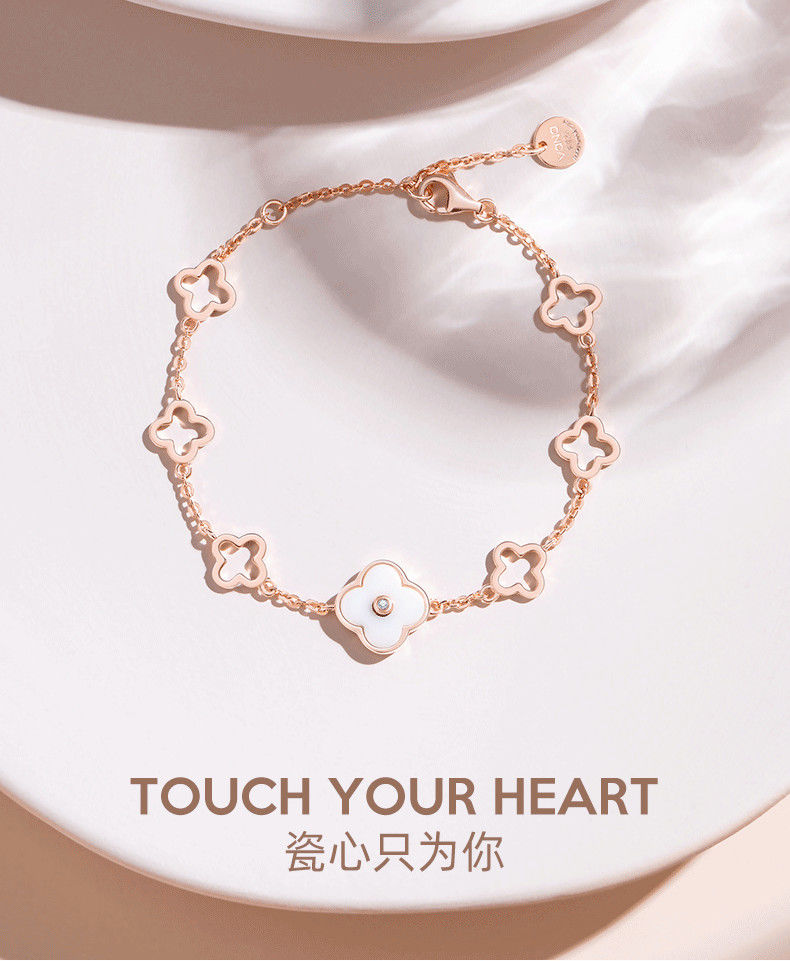 VANAセラミック四つ葉クローバーブレスレット純銀高級感ファッション誕生日プレゼント