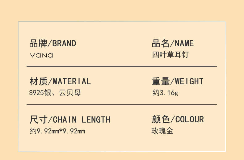 VANA四つ葉クローバー純銀ピアス軽量贅沢気質誕生日プレゼント