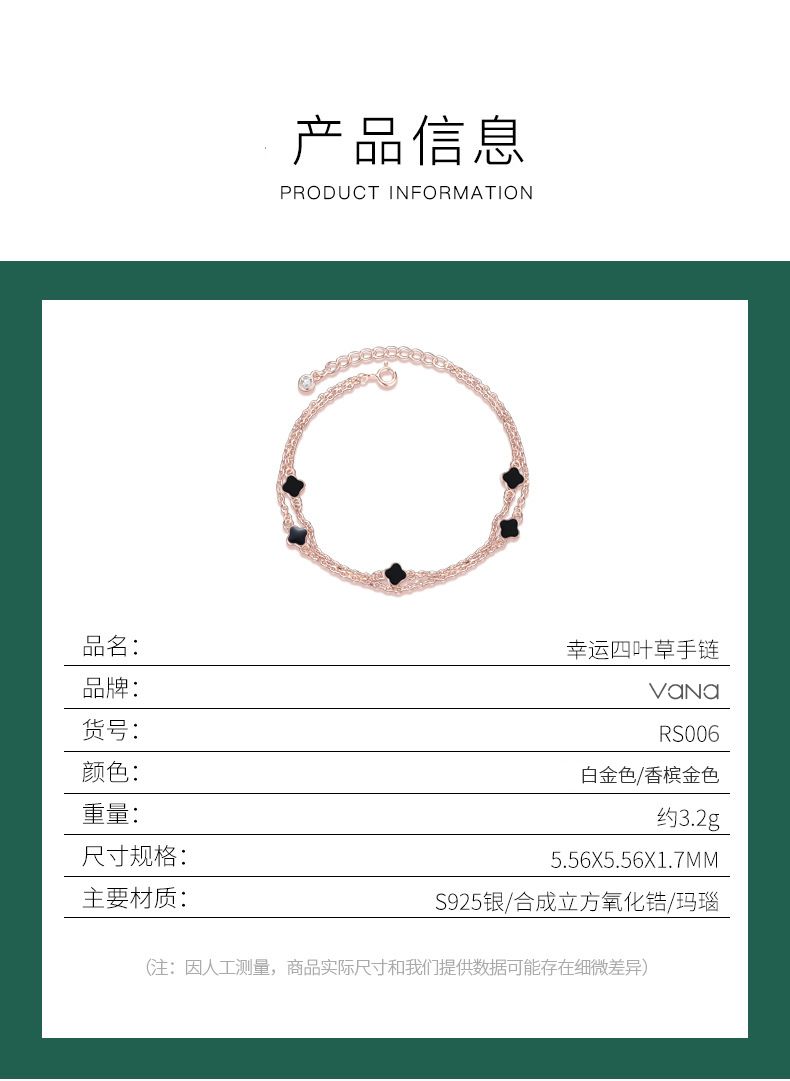 VANA四つ葉クローバー純銀ブレスレットins贅沢上品プレゼント