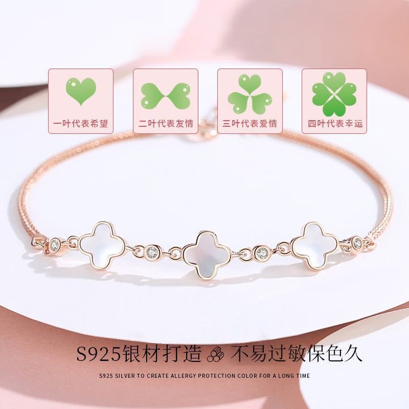 VANA s925シルバー四つ葉クローバーブレスレット女子プレゼント