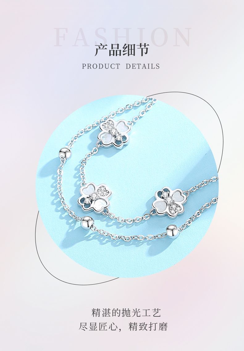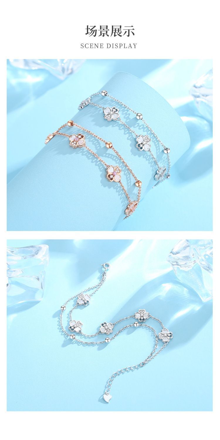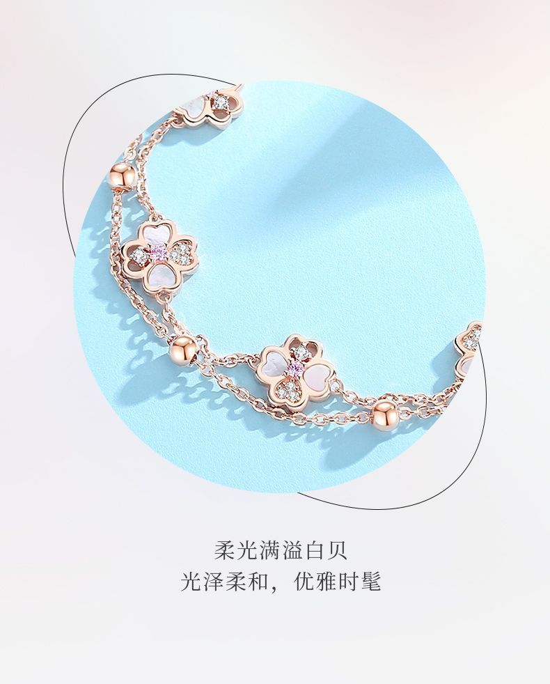 VANA925シルバーダブルクローバーブレスレット女性バレンタインプレゼント